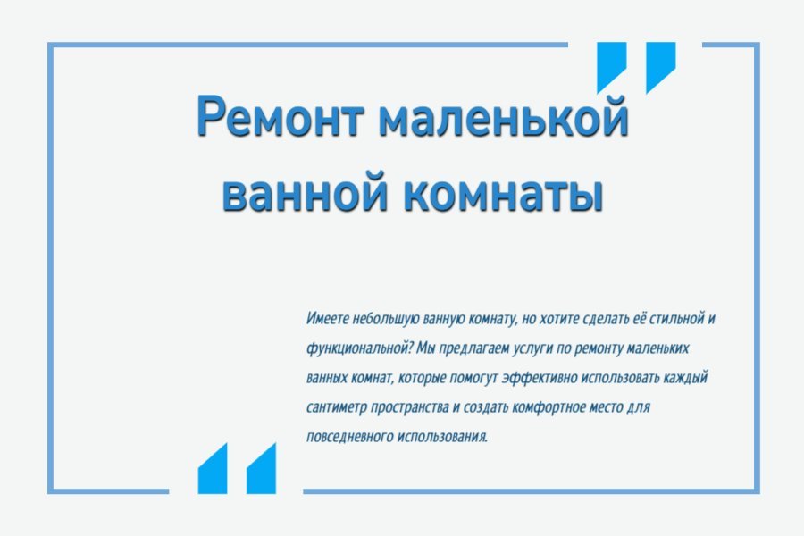 - Быстрое выполнение работ: Ремонт маленькой ванной комнаты проводится оперативно, с соблюдением всех норм и стандартов.